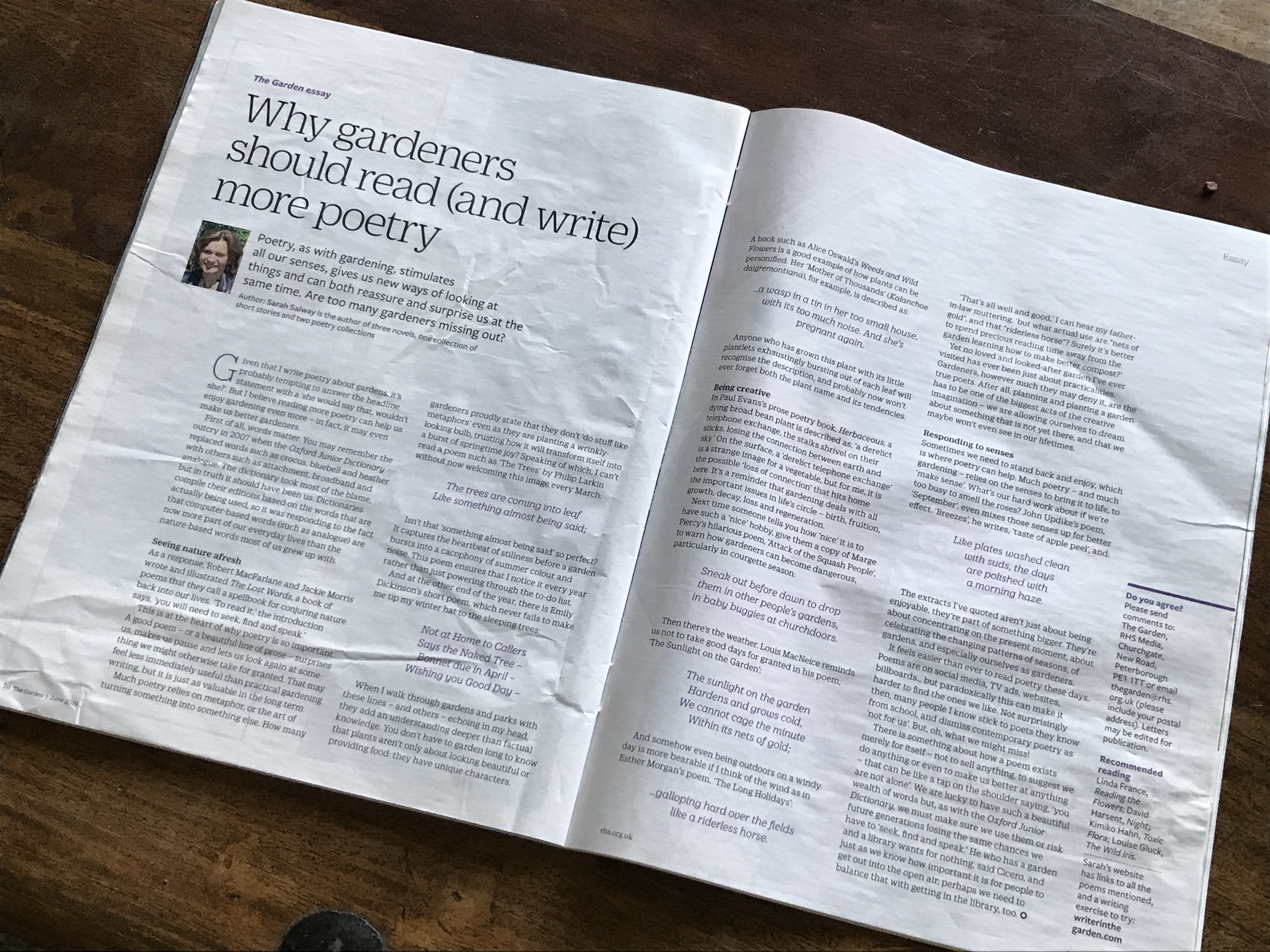 The June edition of the RHS’s ‘The Garden’ journal included a thought provoking essay advocating that gardeners should ‘read (and write) more poetry’. The author Sarah Salway contributed this interesting piece – I’m not intending to review it here (suffice to say it’s well worth reading), my purpose in referring to it is that it included signposts to Sarah’s website, ‘Writer in the Garden’ and a creative writing exercise to try.