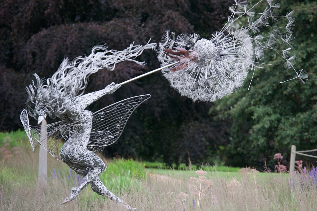 I don’t like strong winds (I don’t suppose many people do!), but although parts of Trentham Gardens were closed because of the gusts, Sophie, me and Ollie spent a lovely afternoon in August, strolling through the formal garden. With access to so little, it was possible to take our time and concentrate on the finer details. Swirling and drifting, the ethereal creatures along the Fairy Trail (sculpted by local artist Robin Wight) had no trouble catching our eyes!